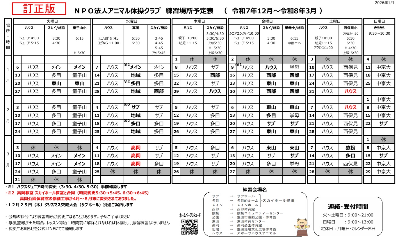 教室カレンダー